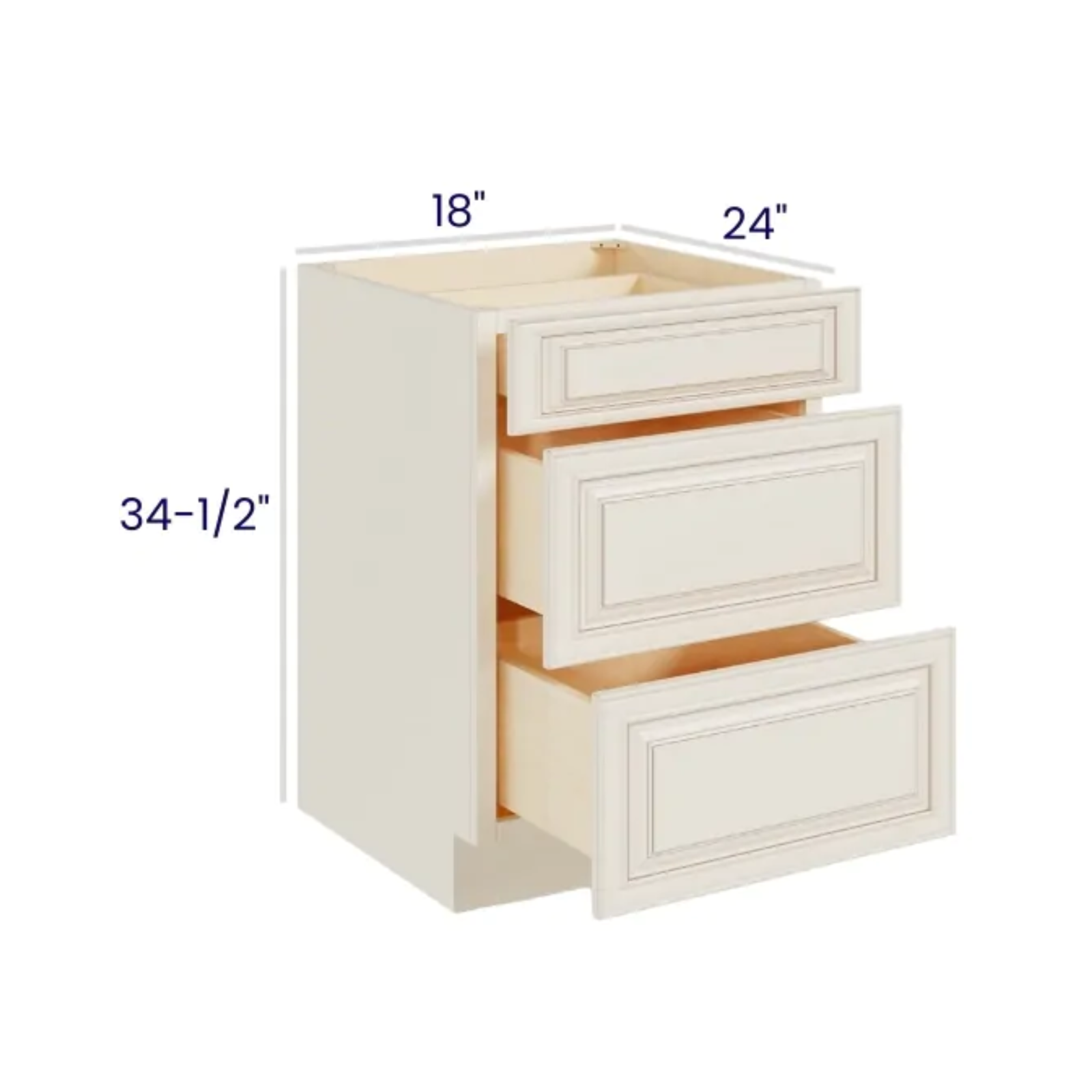 Charleston White – Drawer Base Cabinet – 18″W X 24″D X 34-1/2″H With 3 Drawer