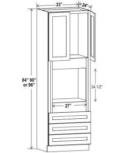 Shaker Gray 33″ W Double Door Oven Pantry Cabinet with Three Drawers