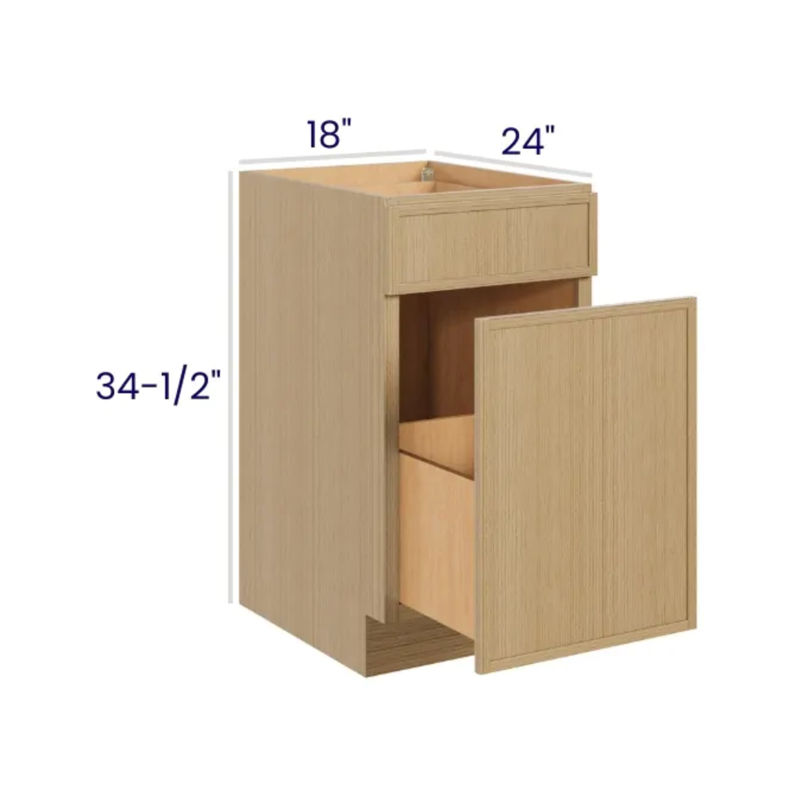 Modern Cabinets & Co Slim Shaker is built to last and will elevate any kitchen or bathroom to a modern look/feel. By shopping at Modern Cabinets & Co, you’re not just getting an ordinary cabinet; you’re investing in lasting elegance and quality. Our RTA cabinets will transform and modernize any kitchen, including those looking for a slim white oak trash cabinet feature.